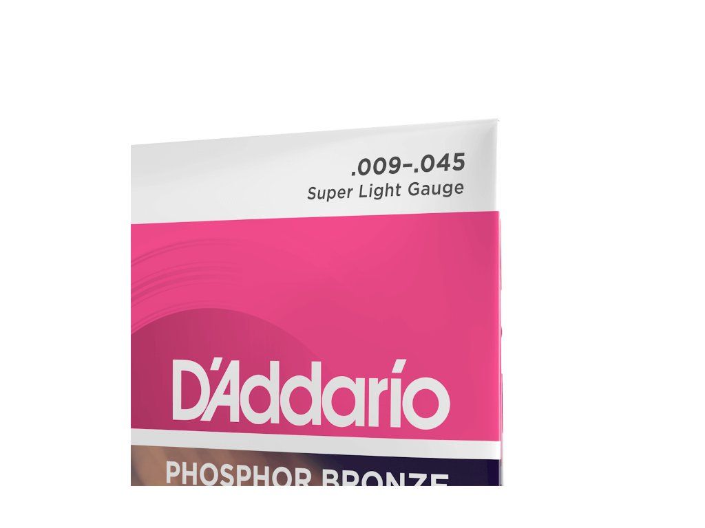 Sada strun na akustickou kytaru D´Addario: Phosphor Bronze Round Wound, 009-045, Super Light.