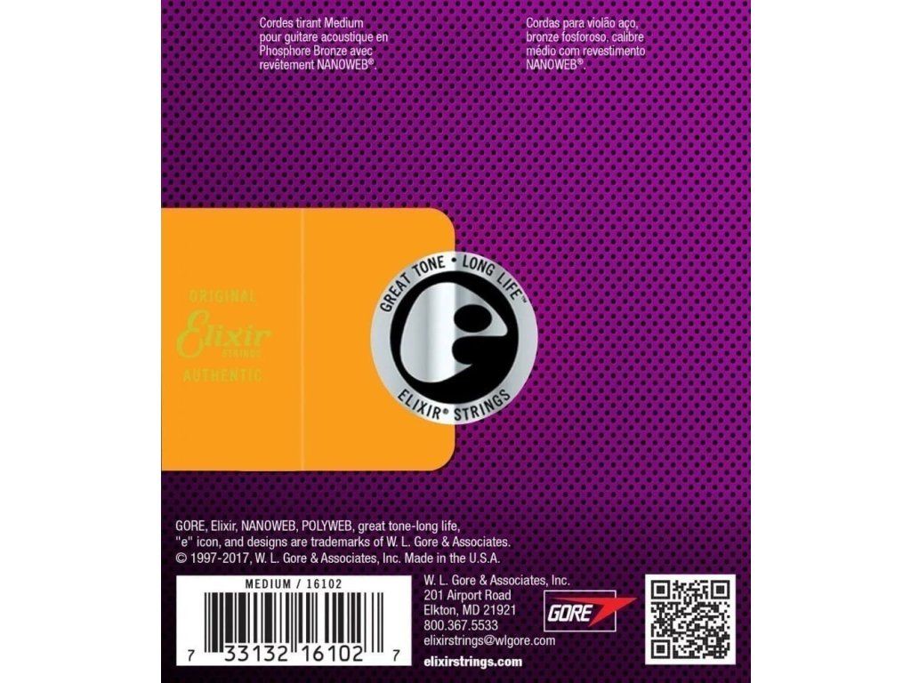 Elixir 16102 Acoustic NanoWeb Phosphor Bronze Medium - struny na akustickou kytaru