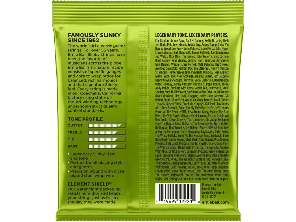 Ernie Ball Regular Slinky struny pro elektrickou kytaru jsou nejlépe prodávané a oblíbené mnoha muzikanty po celém světě jako jsou Eric Clapton, John Mayer, Steve Vai a další.