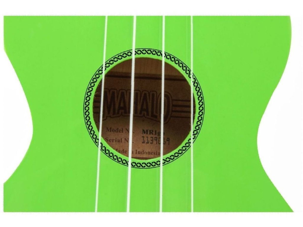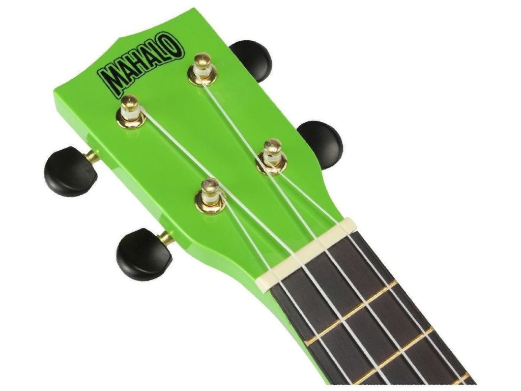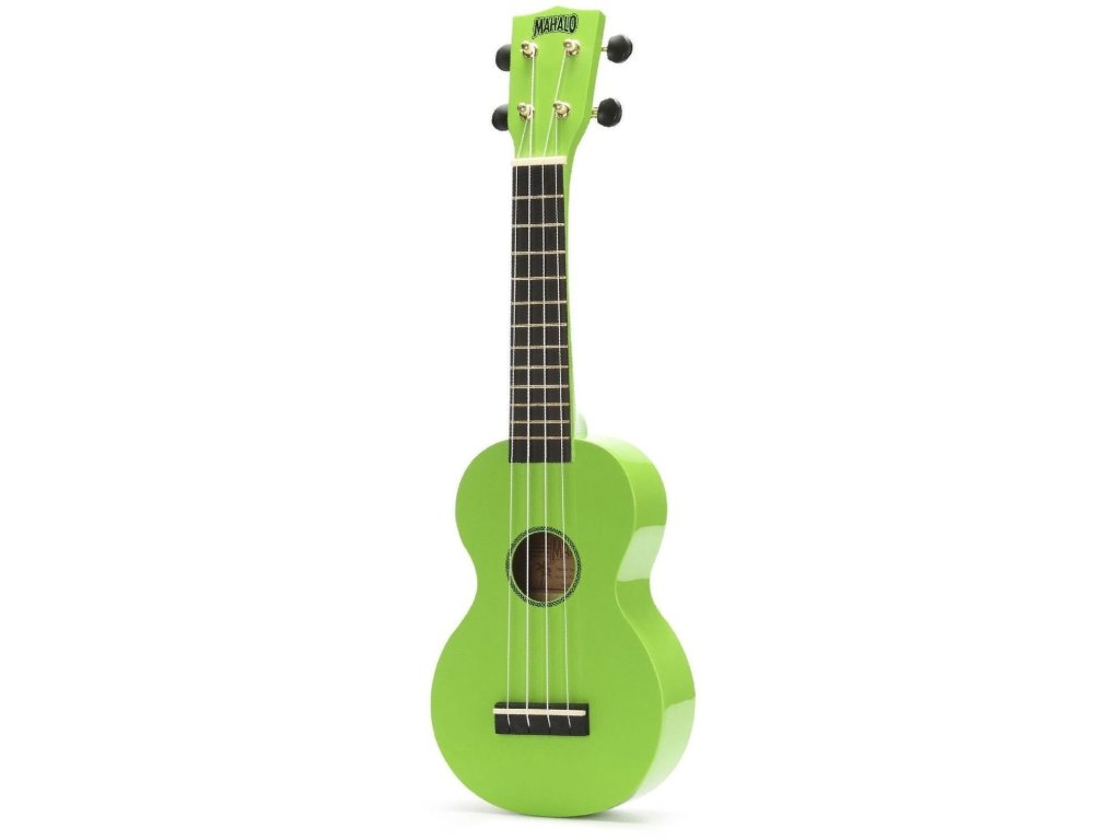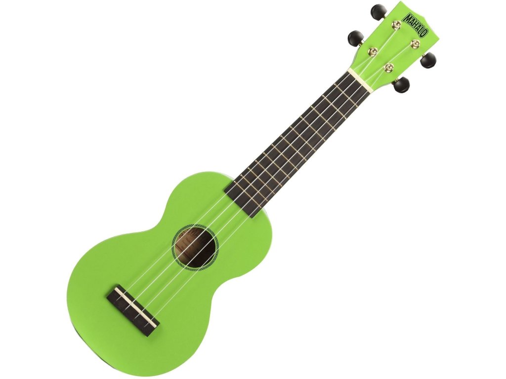 Sopránové ukulele Mahalo ze série Rainbow v zářivě zelené barvě.